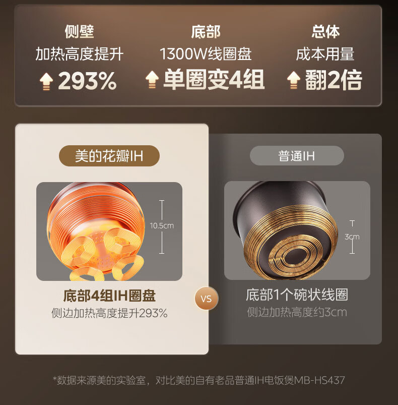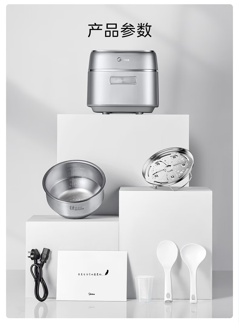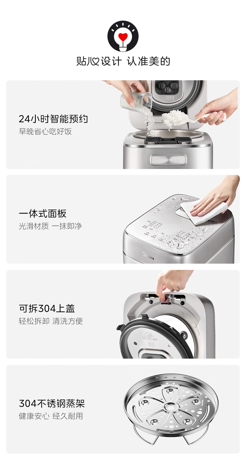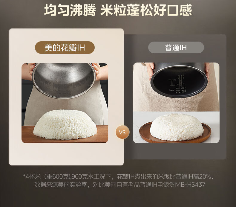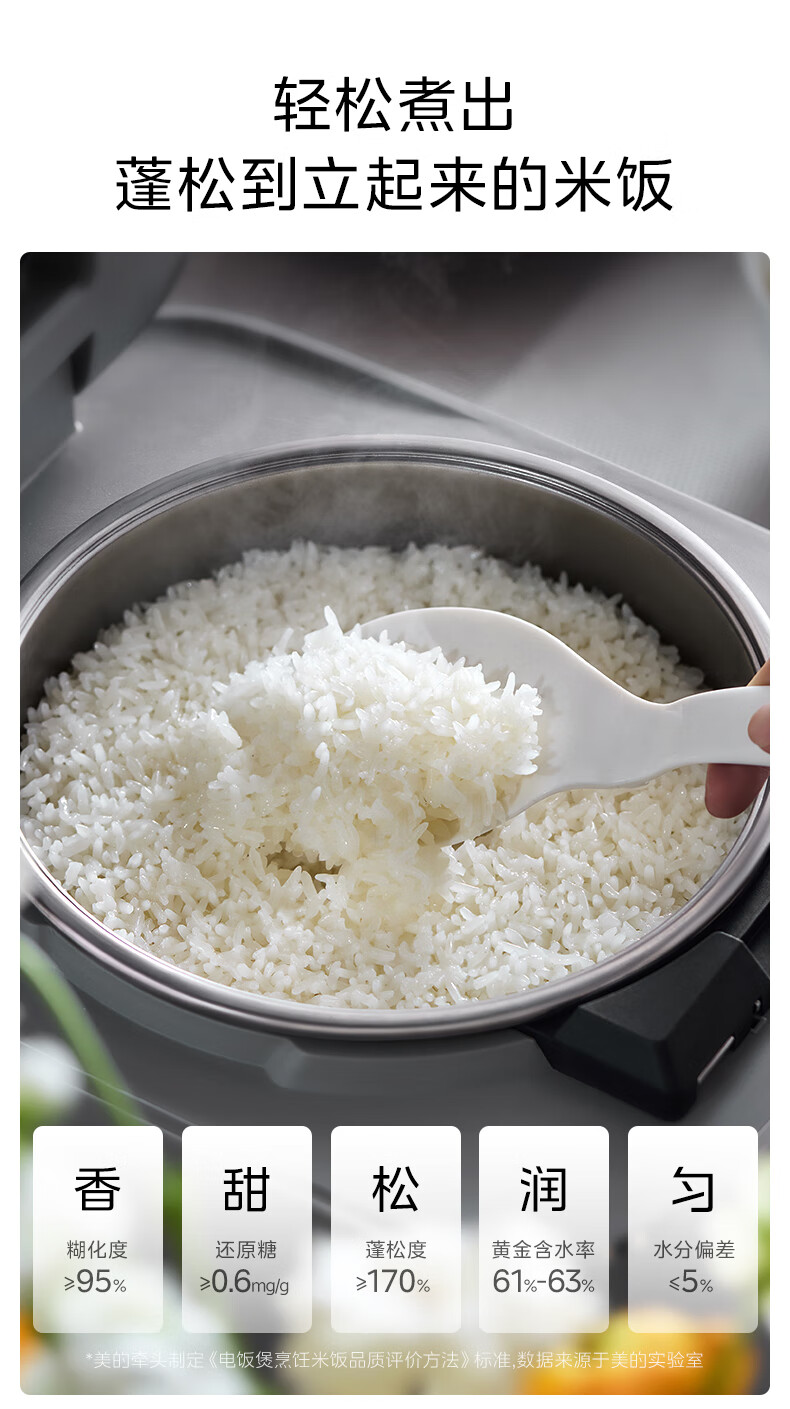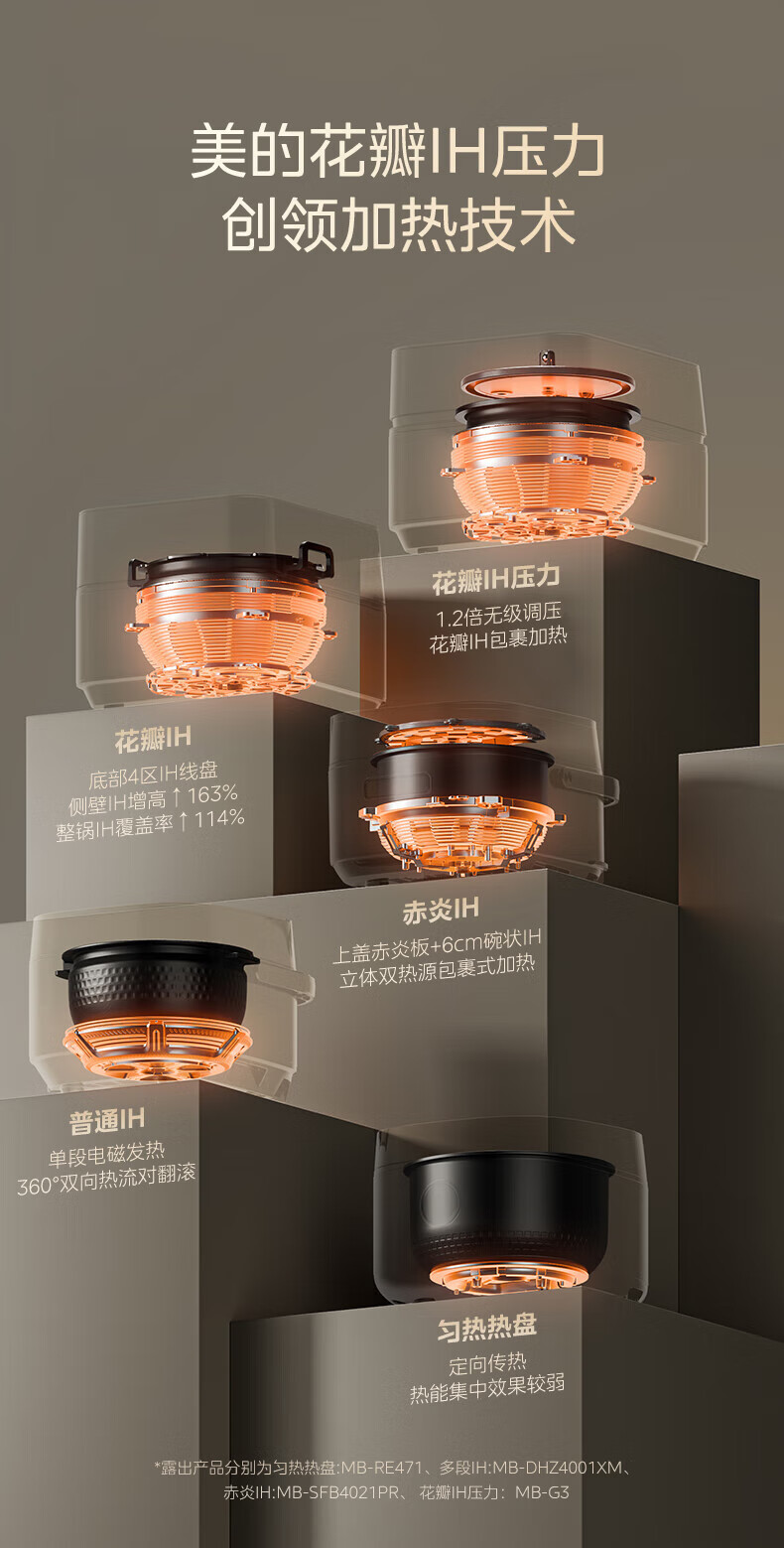 美的(Midea)电饭煲 3-4人纯钛0涂层低压电饭锅 无涂层 花瓣IH 0涂层内胆家用不锈钢智能多功能 【花瓣IH加热】MB-HS412 4L