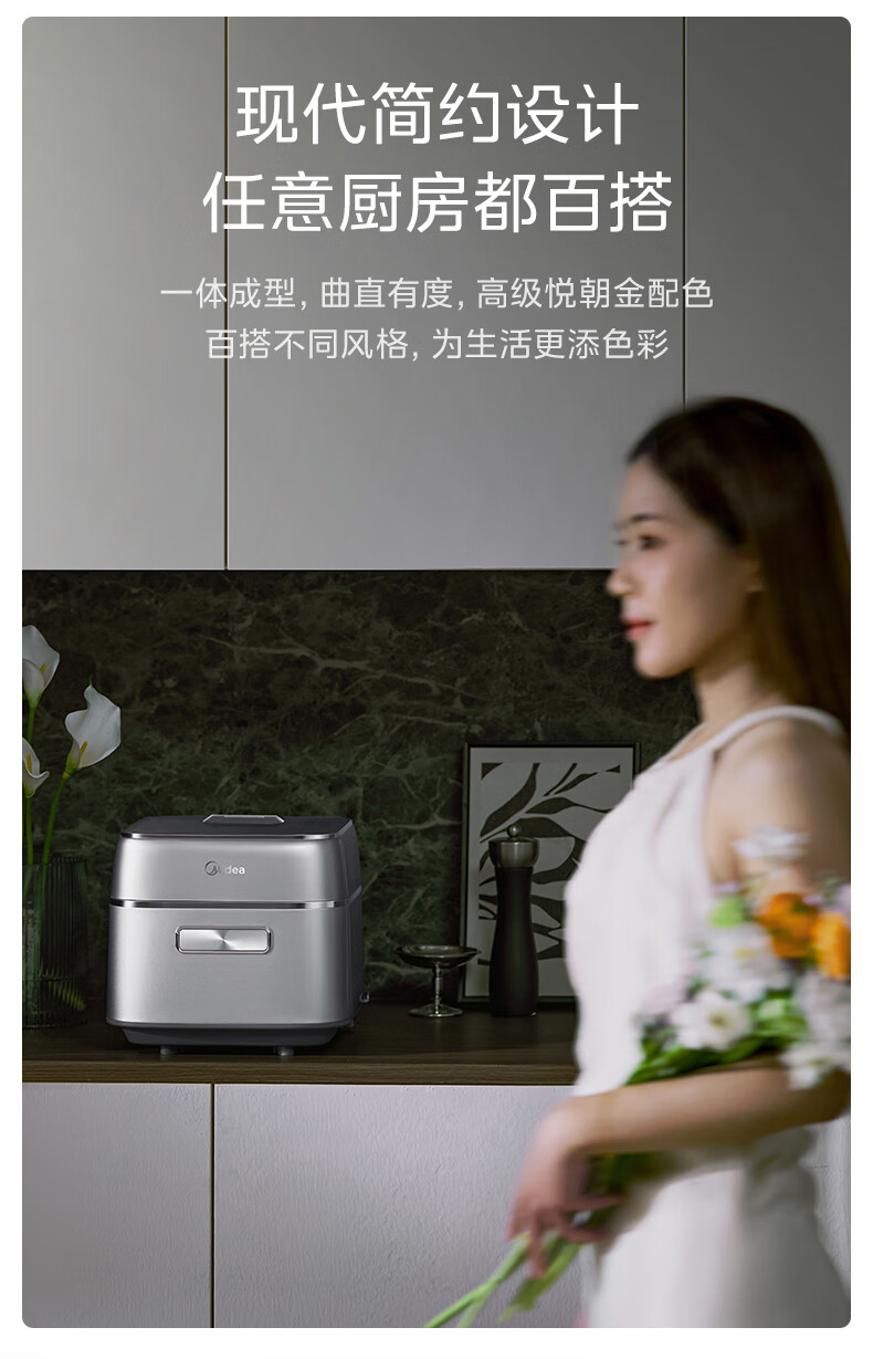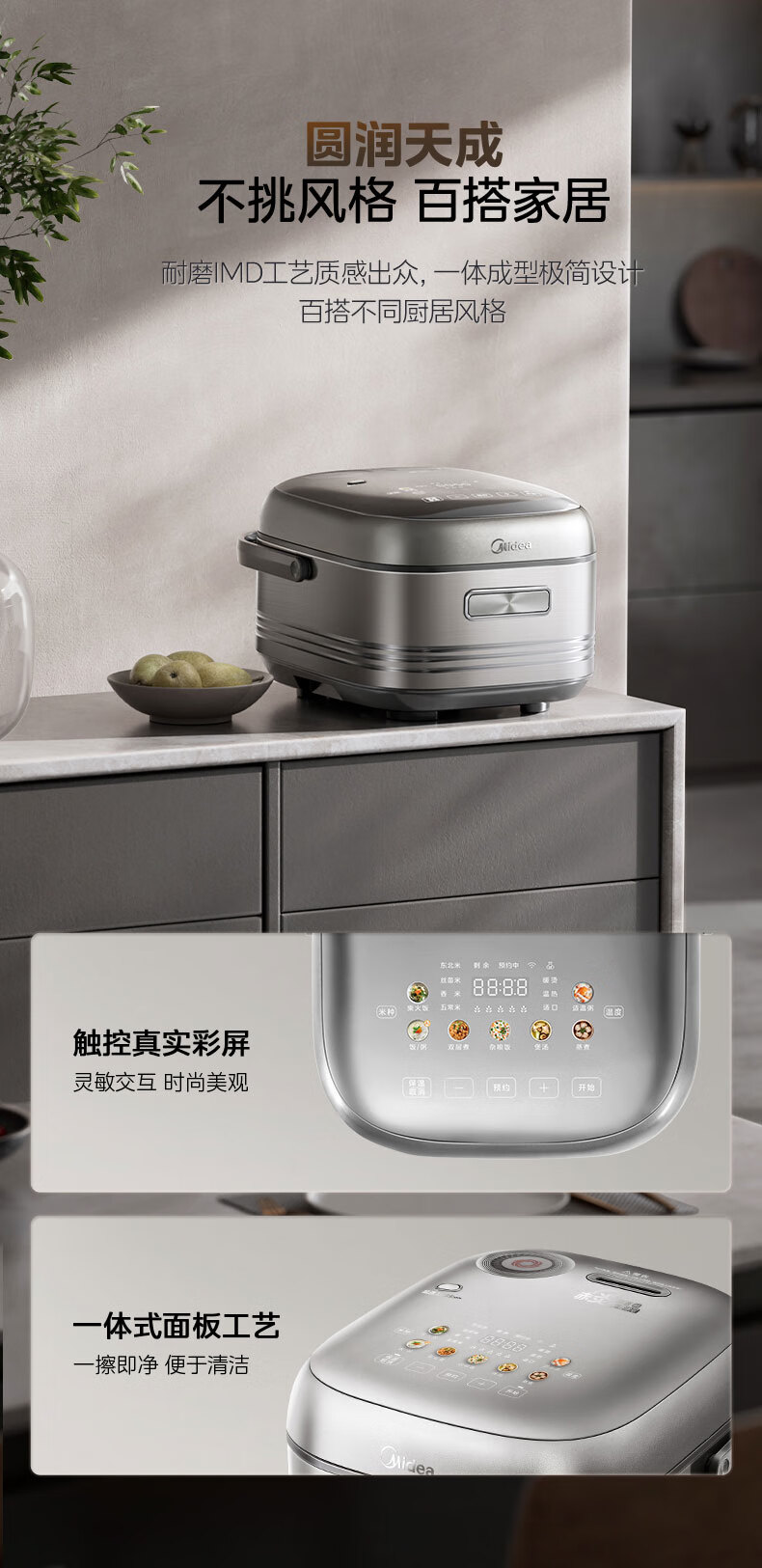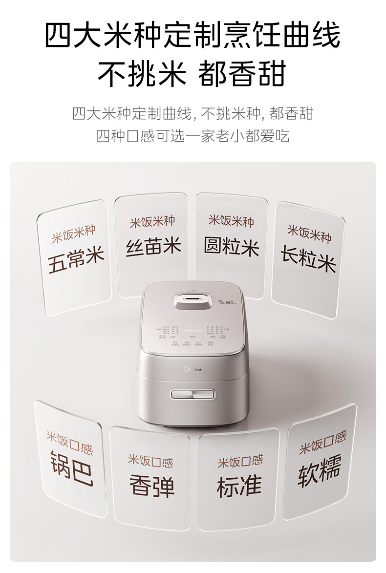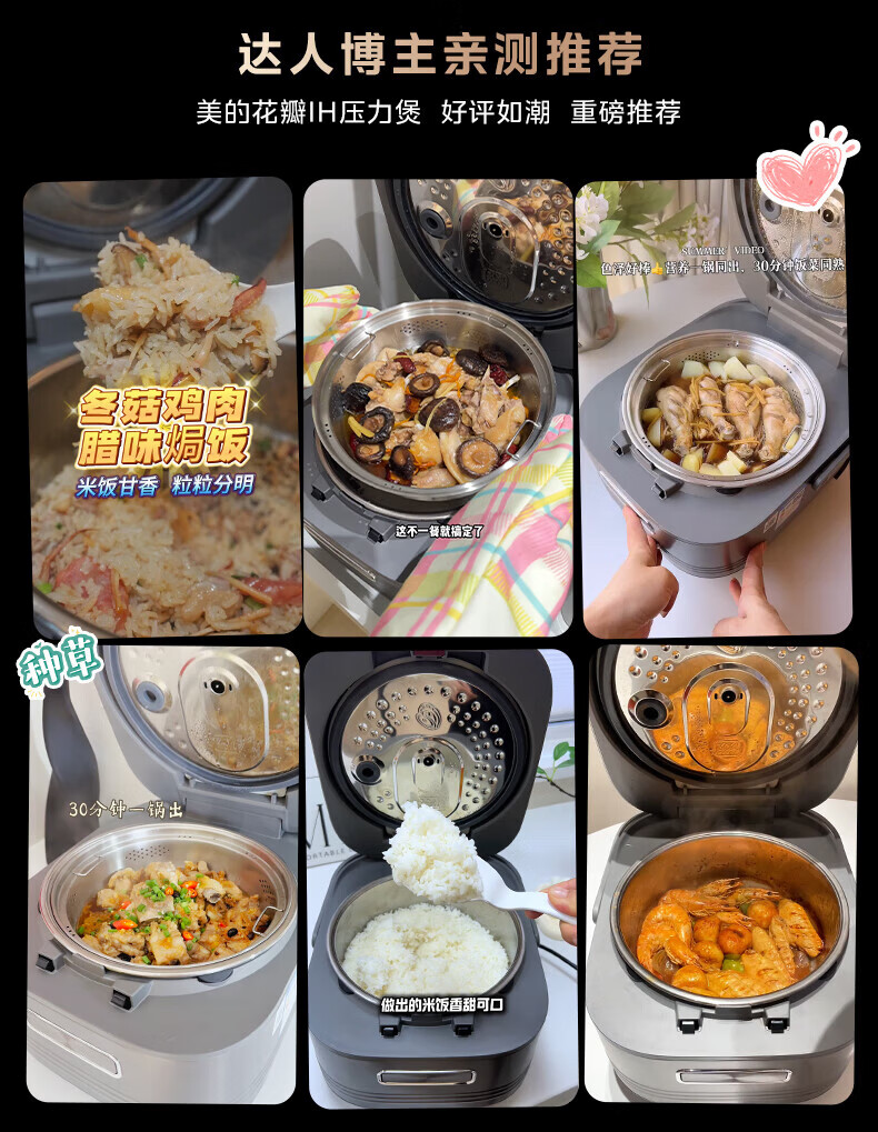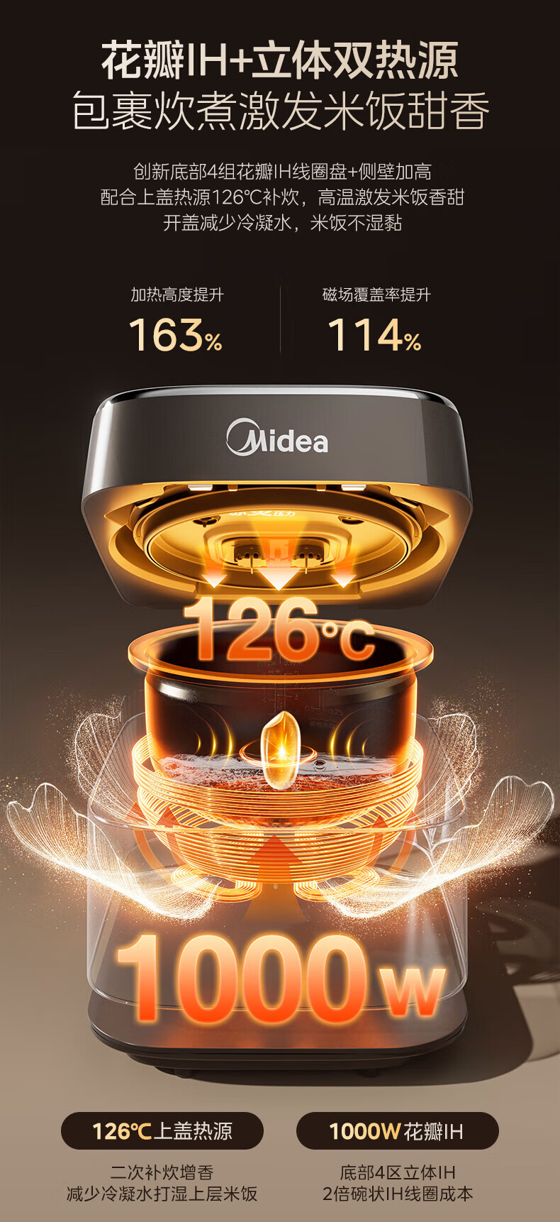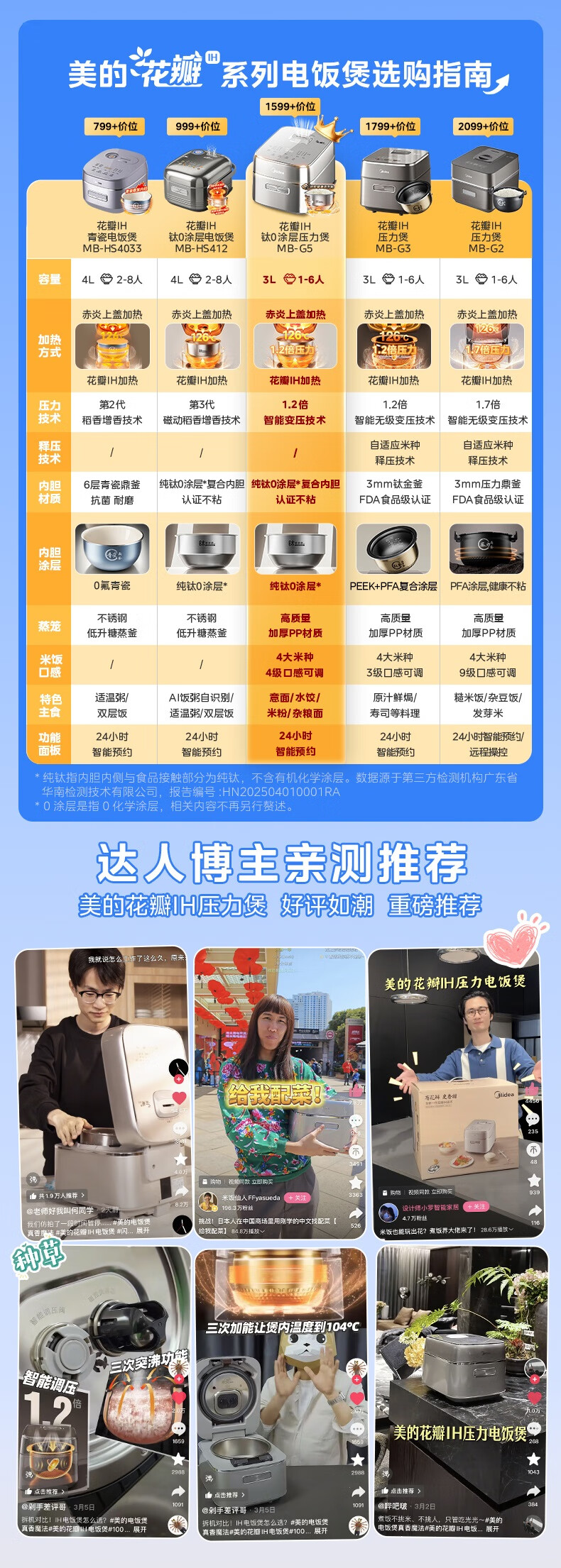 美的(Midea)电饭煲 3-4人纯钛0涂层低压电饭锅 无涂层 花瓣IH 0涂层内胆家用不锈钢智能多功能 【花瓣IH加热】MB-HS412 4L
