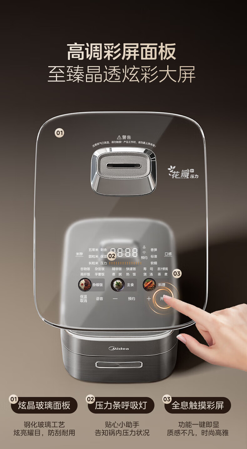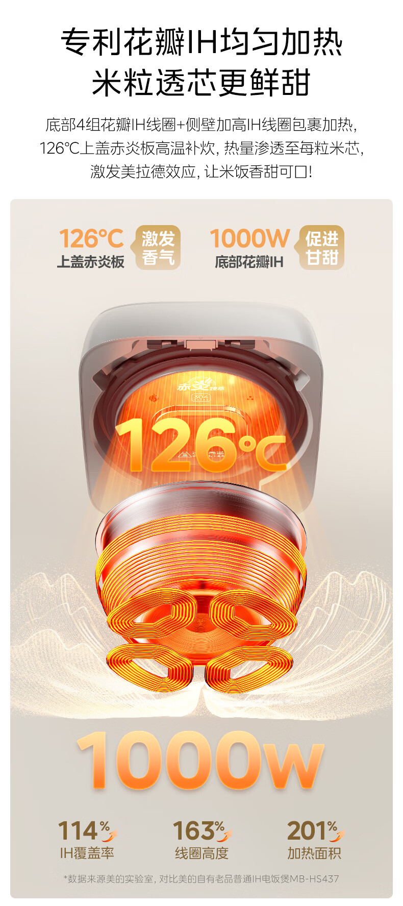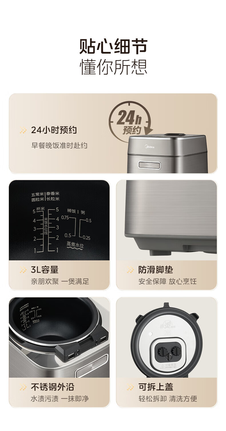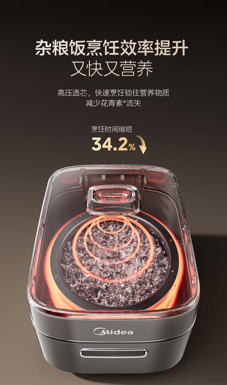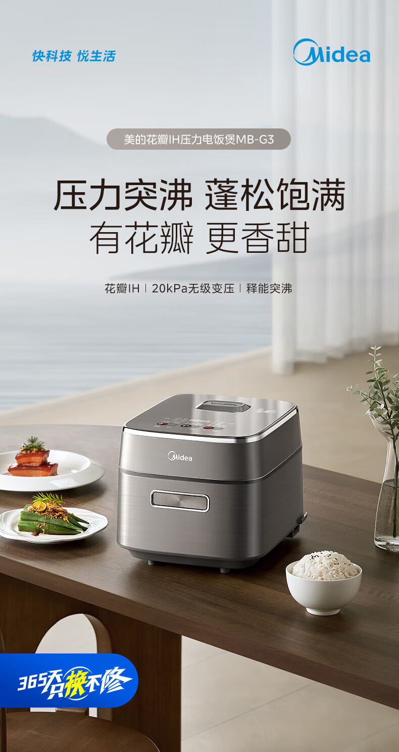 美的(Midea)电饭煲 3-4人纯钛0涂层低压电饭锅 无涂层 花瓣IH 0涂层内胆家用不锈钢智能多功能 【花瓣IH加热】MB-HS412 4L