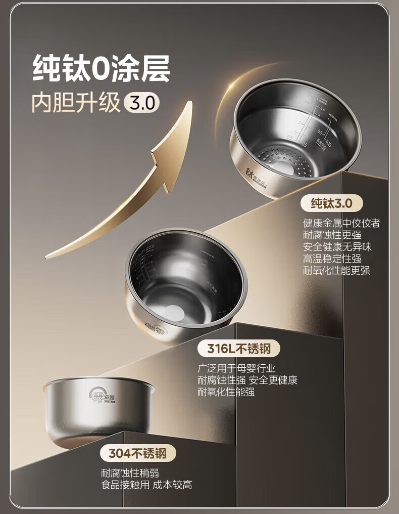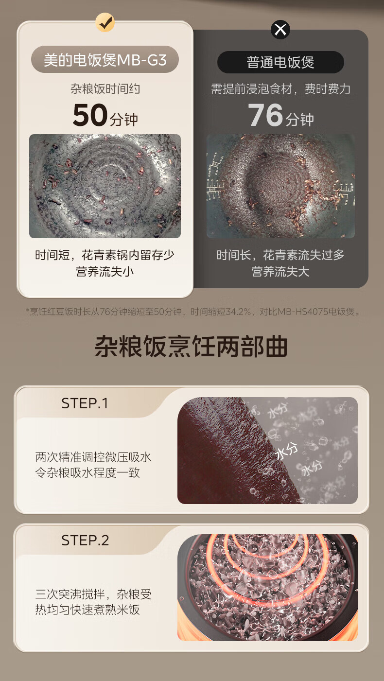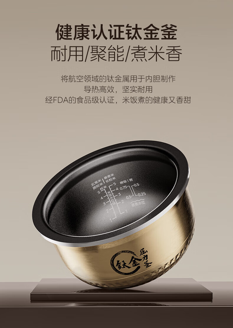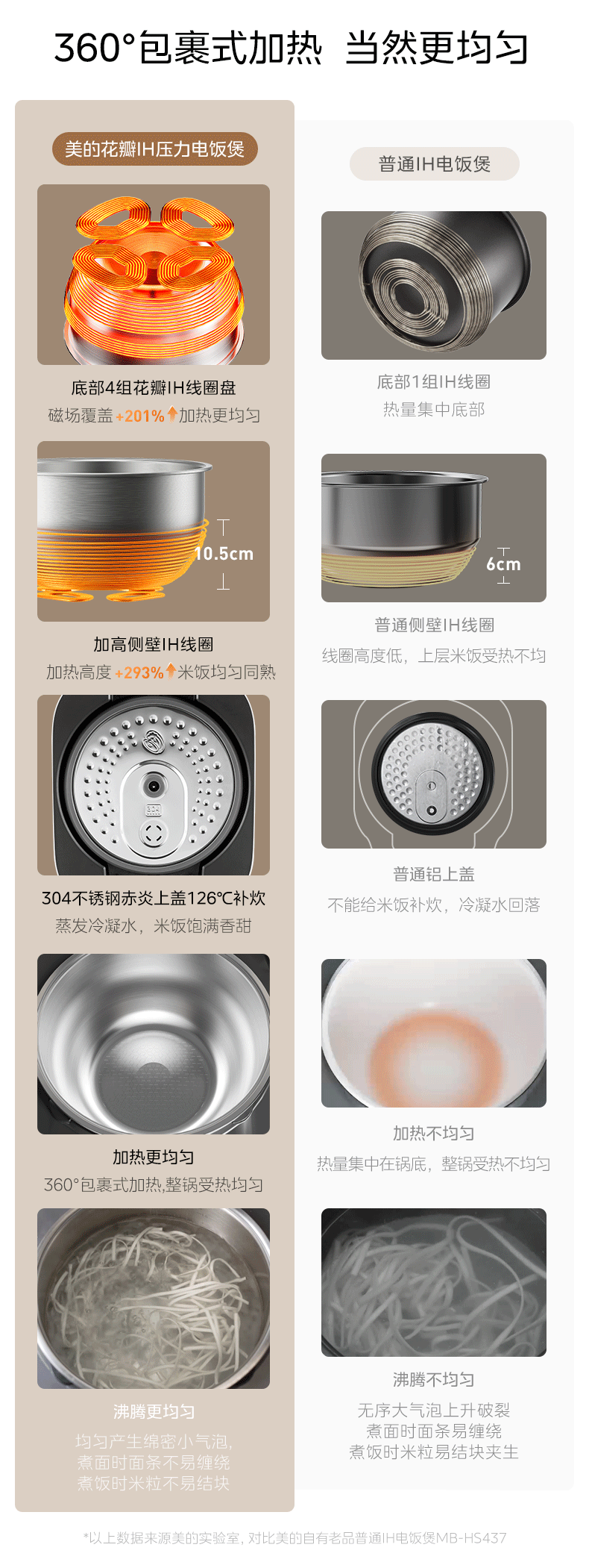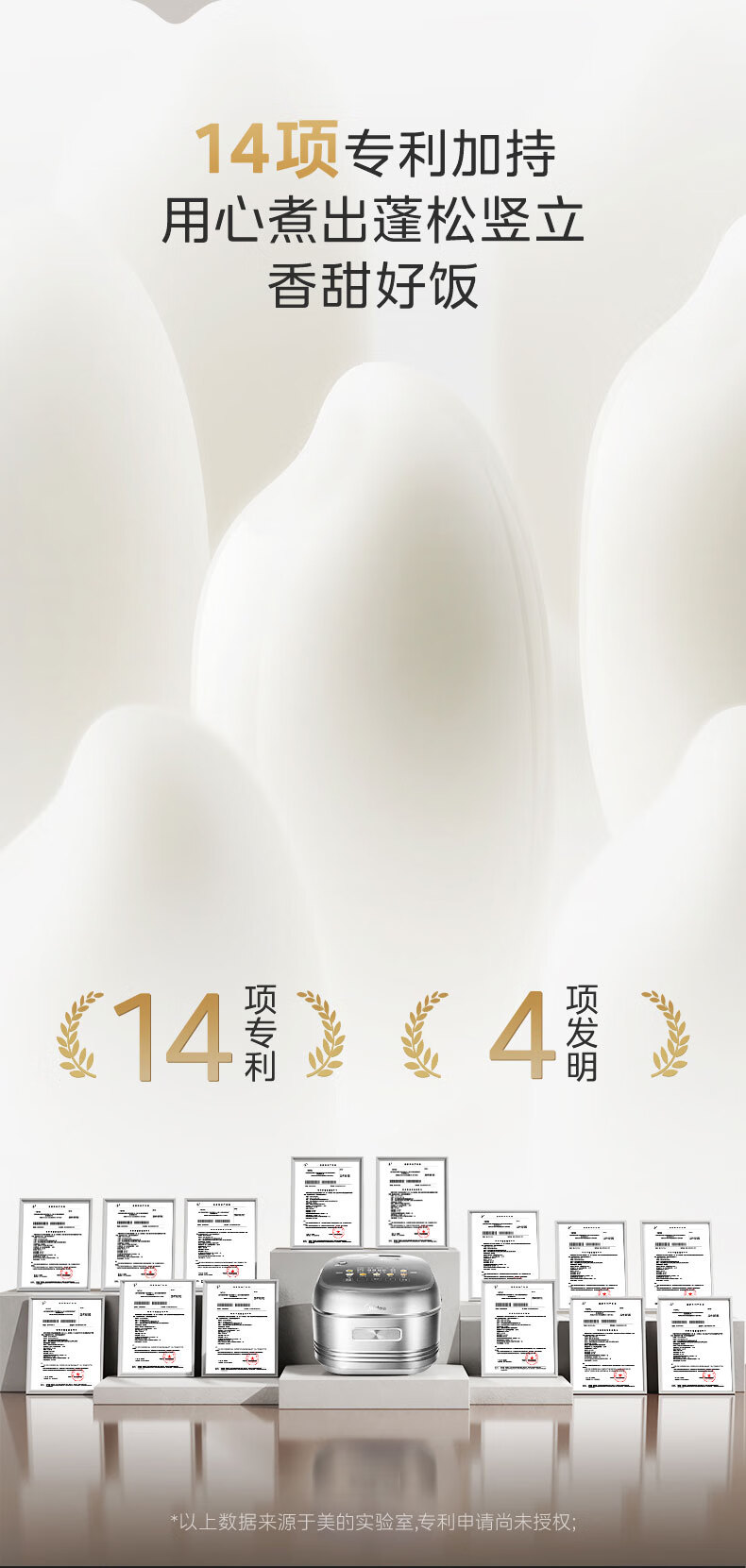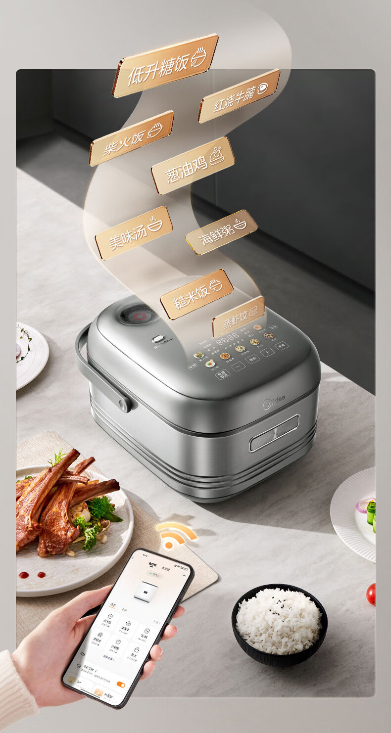 美的(Midea)电饭煲 3-4人纯钛0涂层低压电饭锅 无涂层 花瓣IH 0涂层内胆家用不锈钢智能多功能 【花瓣IH加热】MB-HS412 4L
