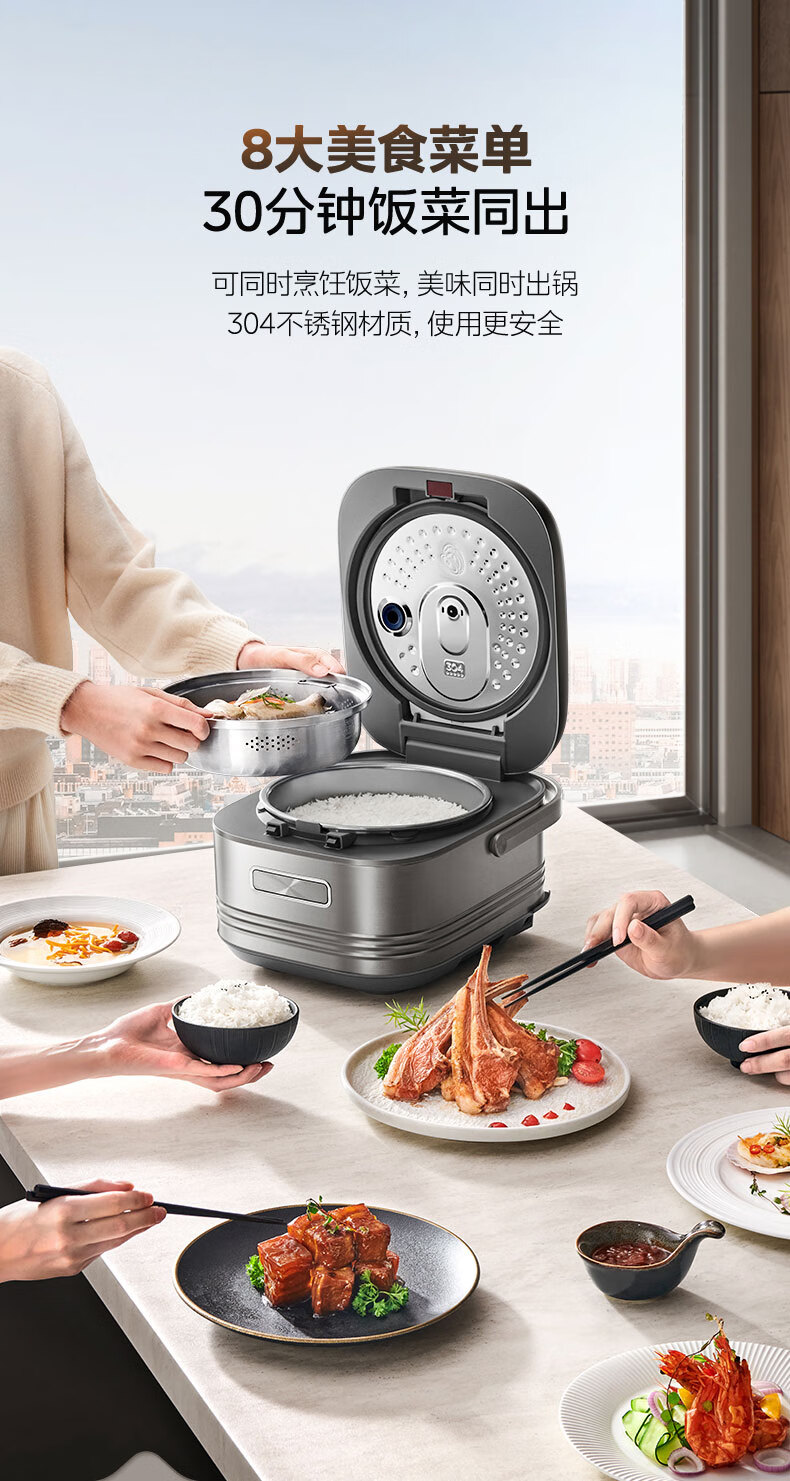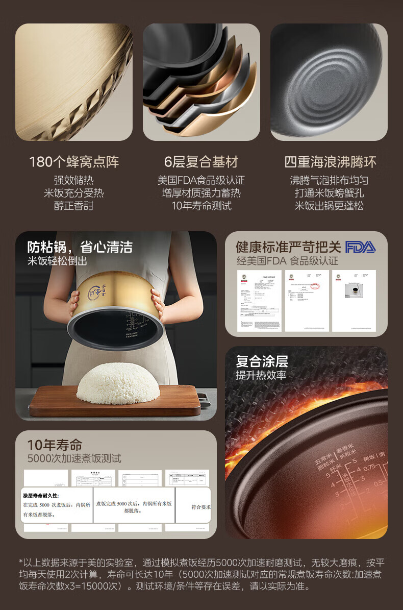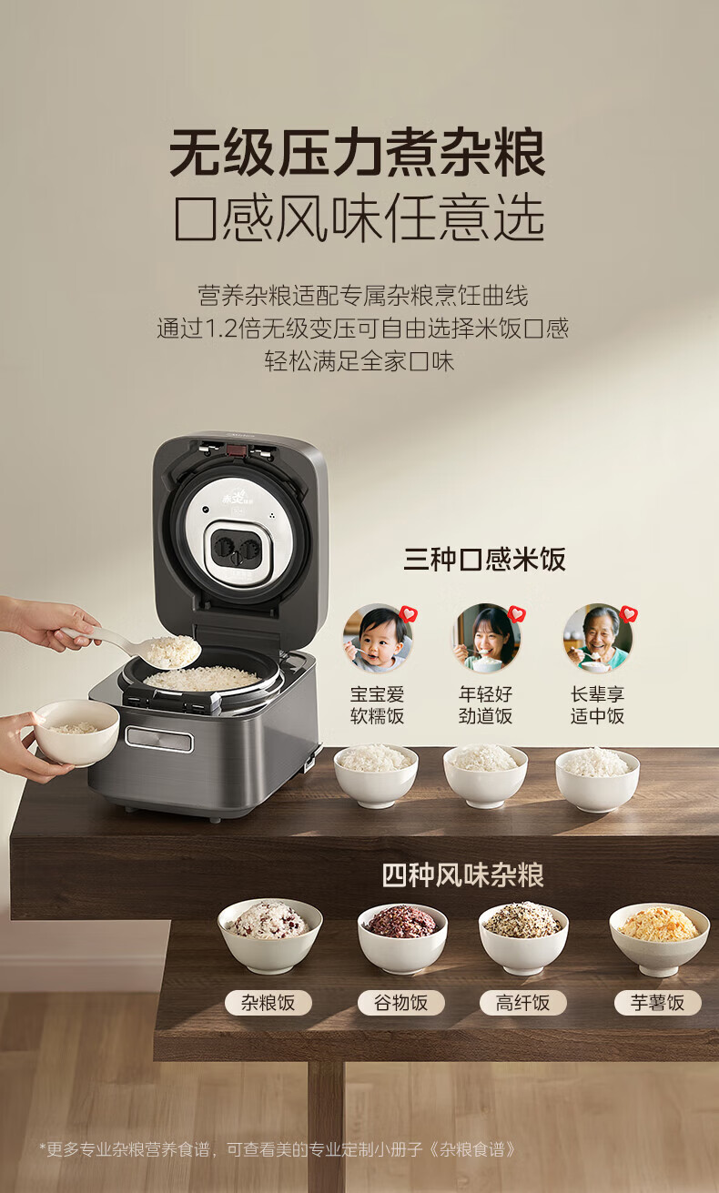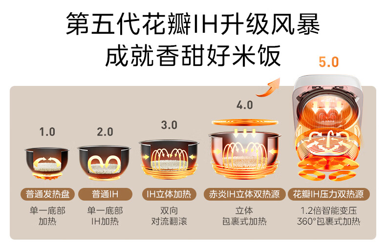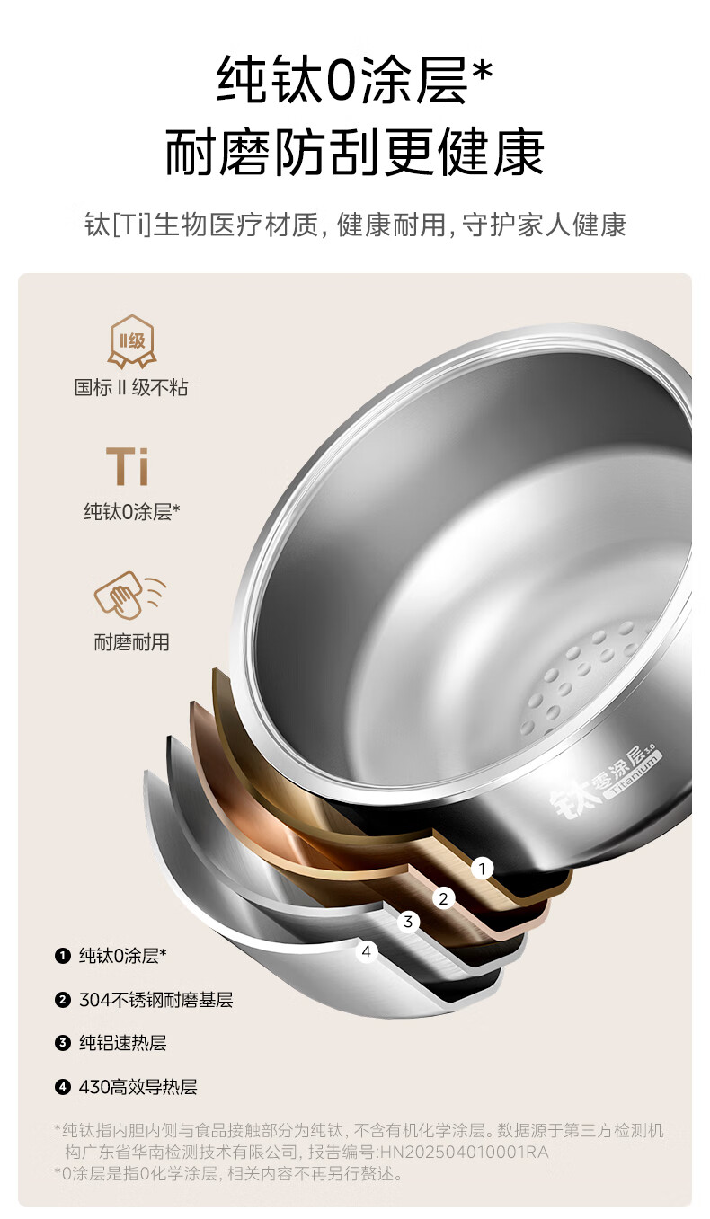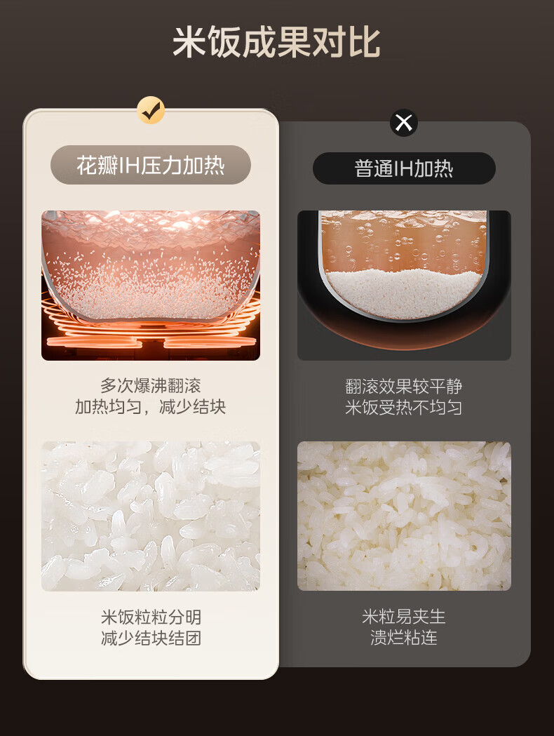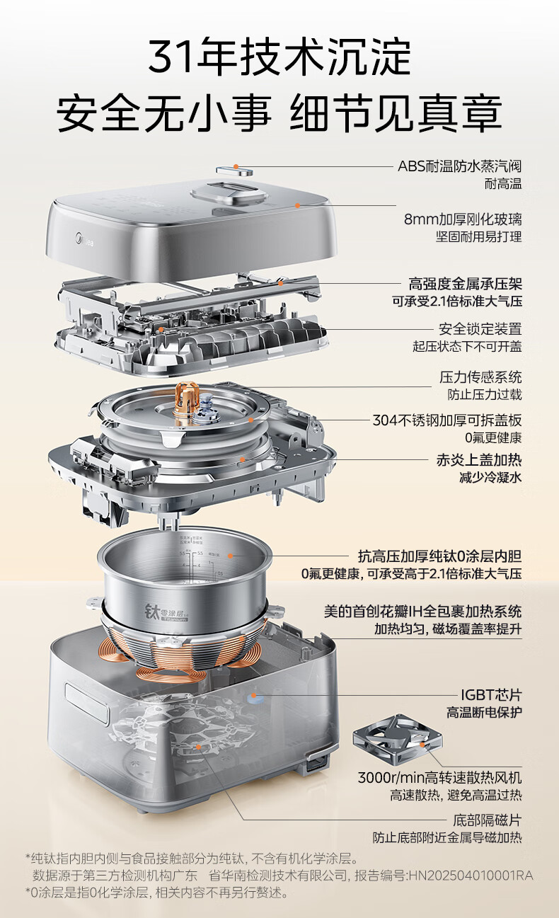 美的(Midea)电饭煲 3-4人纯钛0涂层低压电饭锅 无涂层 花瓣IH 0涂层内胆家用不锈钢智能多功能 【花瓣IH加热】MB-HS412 4L