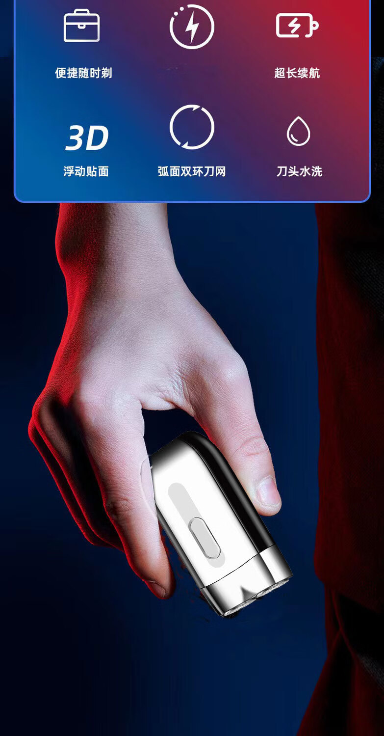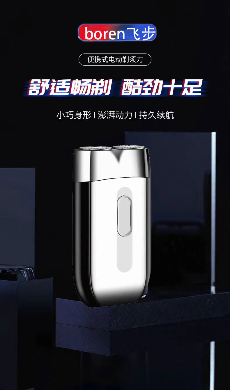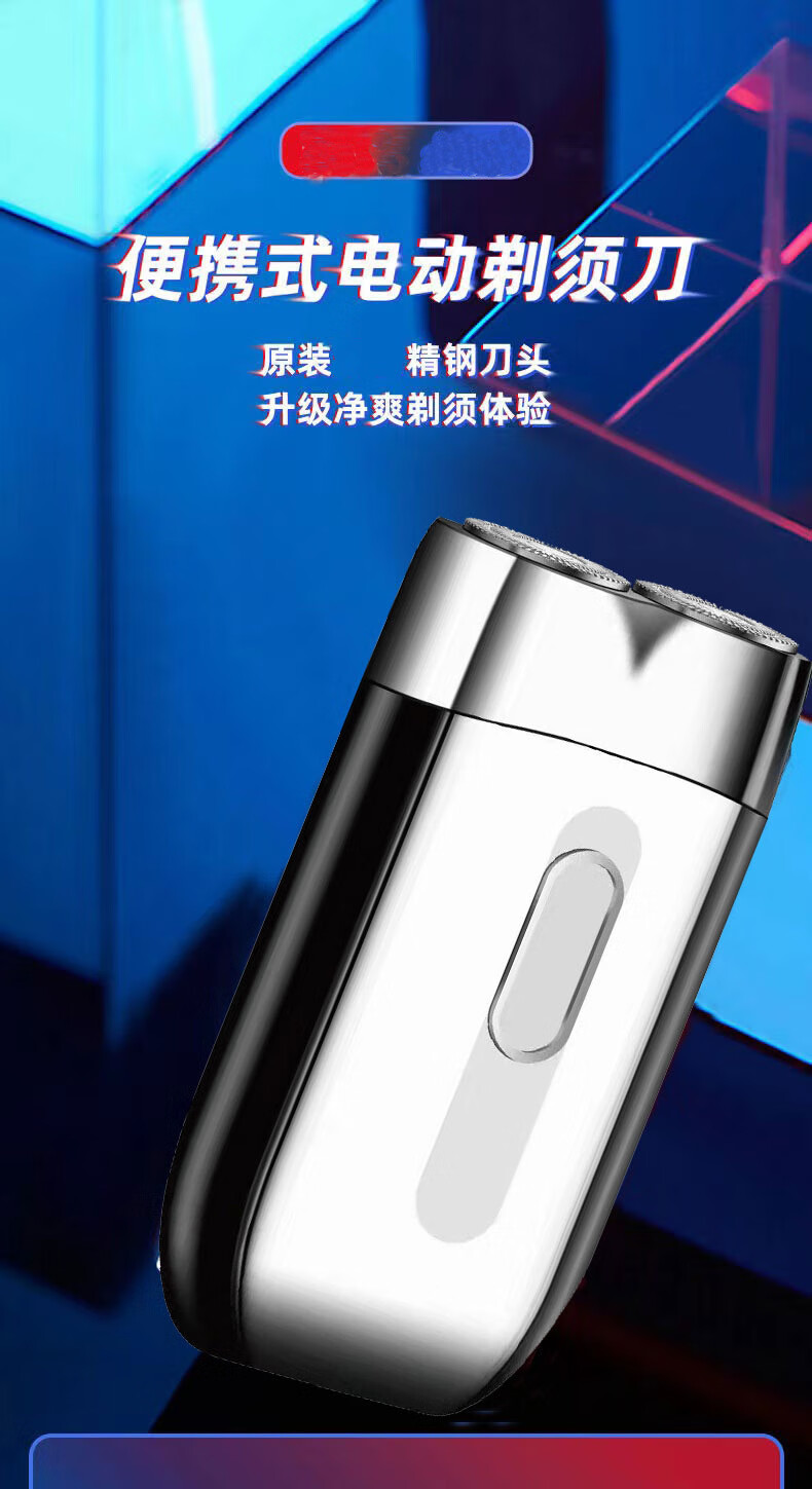 迷你电动剃须刀刮胡刀全身电镀机身便携旅行胡子刀男士胡须刀 电镀银(1个装)