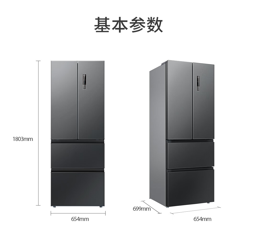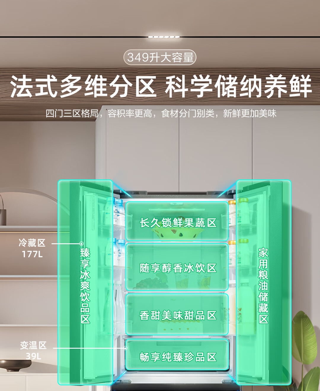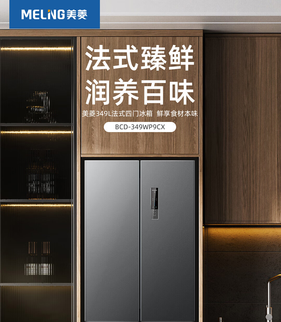美菱(MeiLing)收纳师349升法式多门冰箱一级能效双变频家用四开门风冷无霜节能低噪BCD-349WP9CX国家补贴