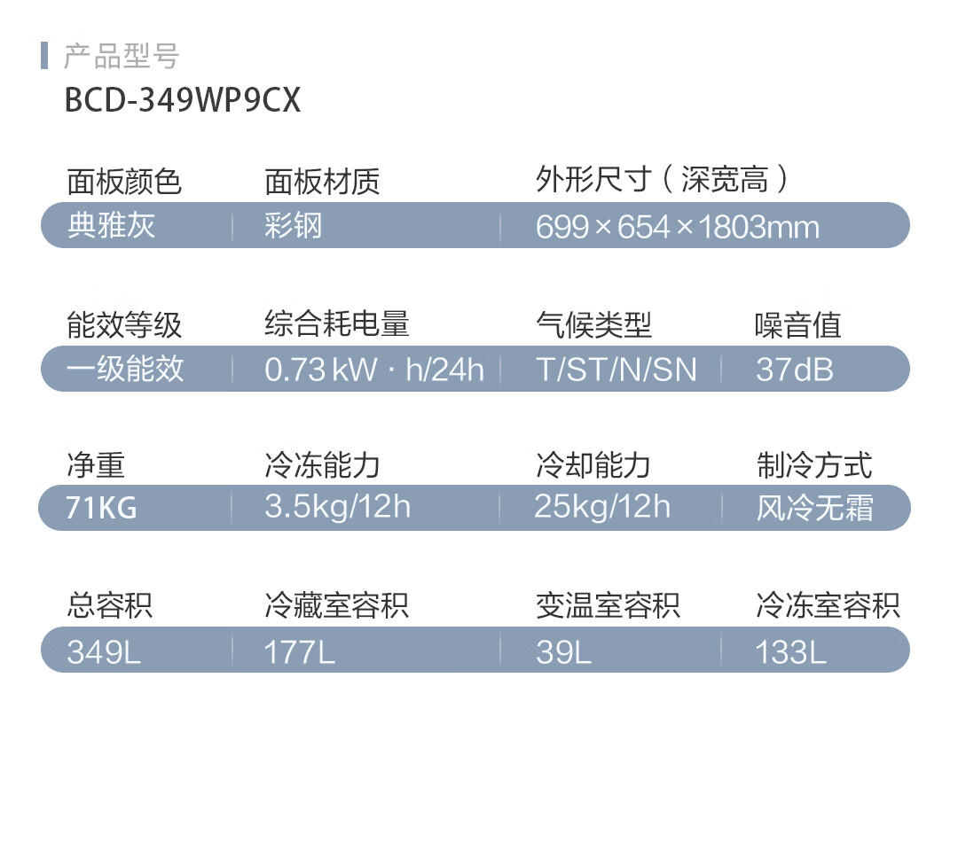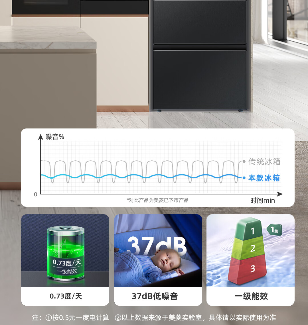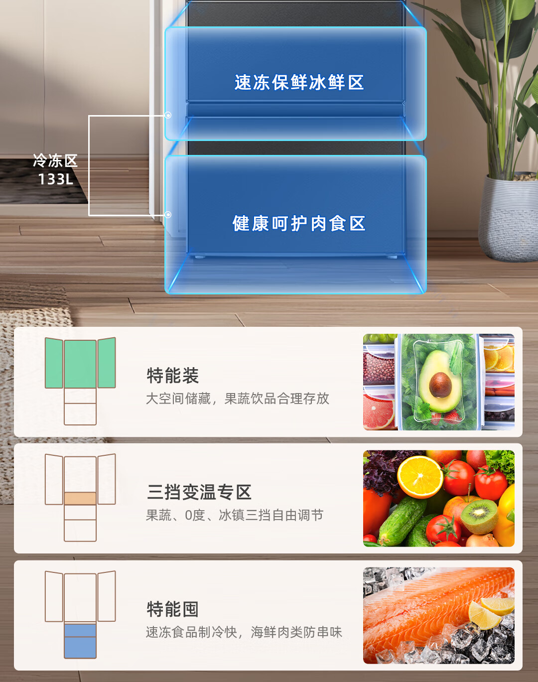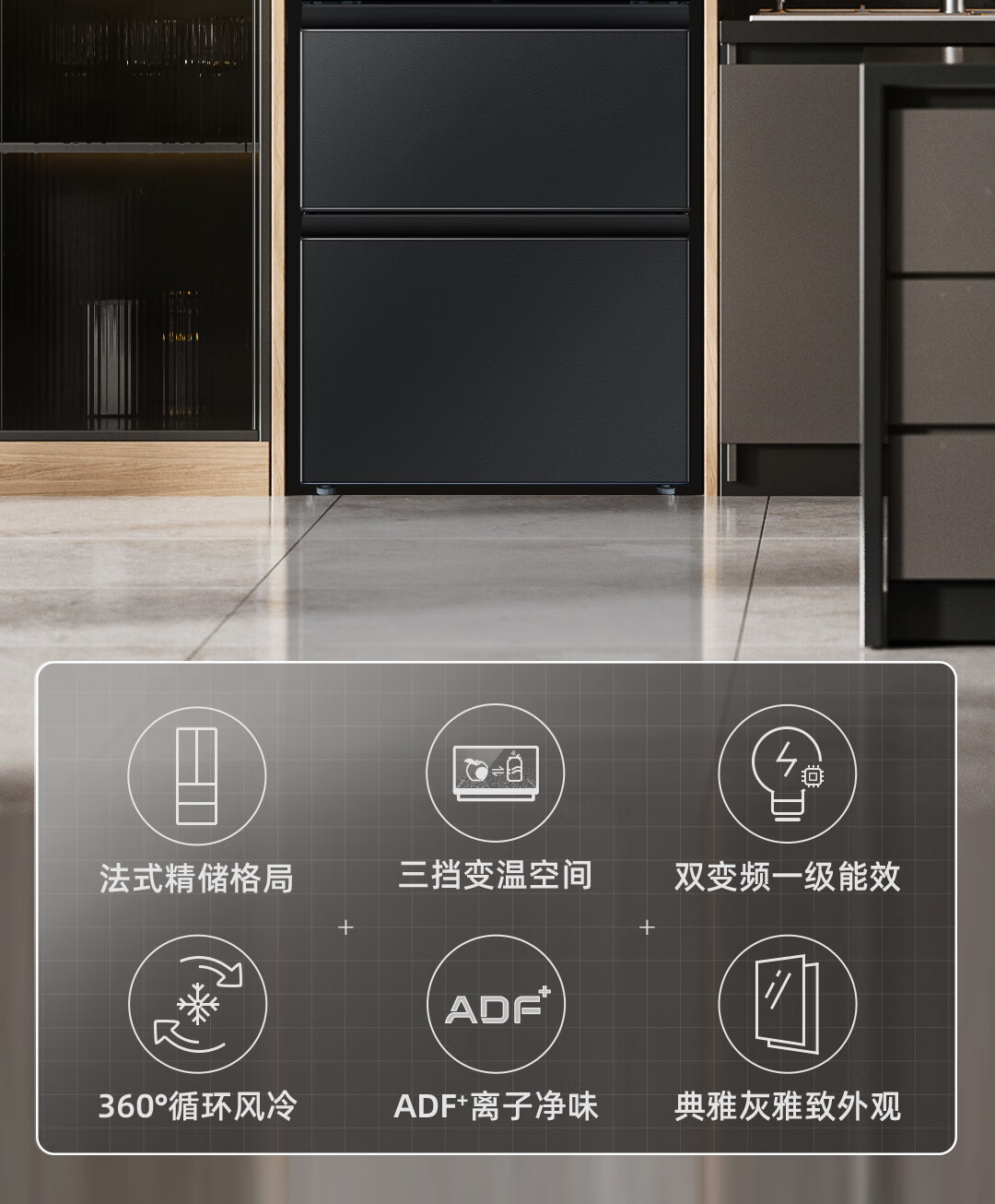 美菱(MeiLing)收纳师349升法式多门冰箱一级能效双变频家用四开门风冷无霜节能低噪BCD-349WP9CX国家补贴