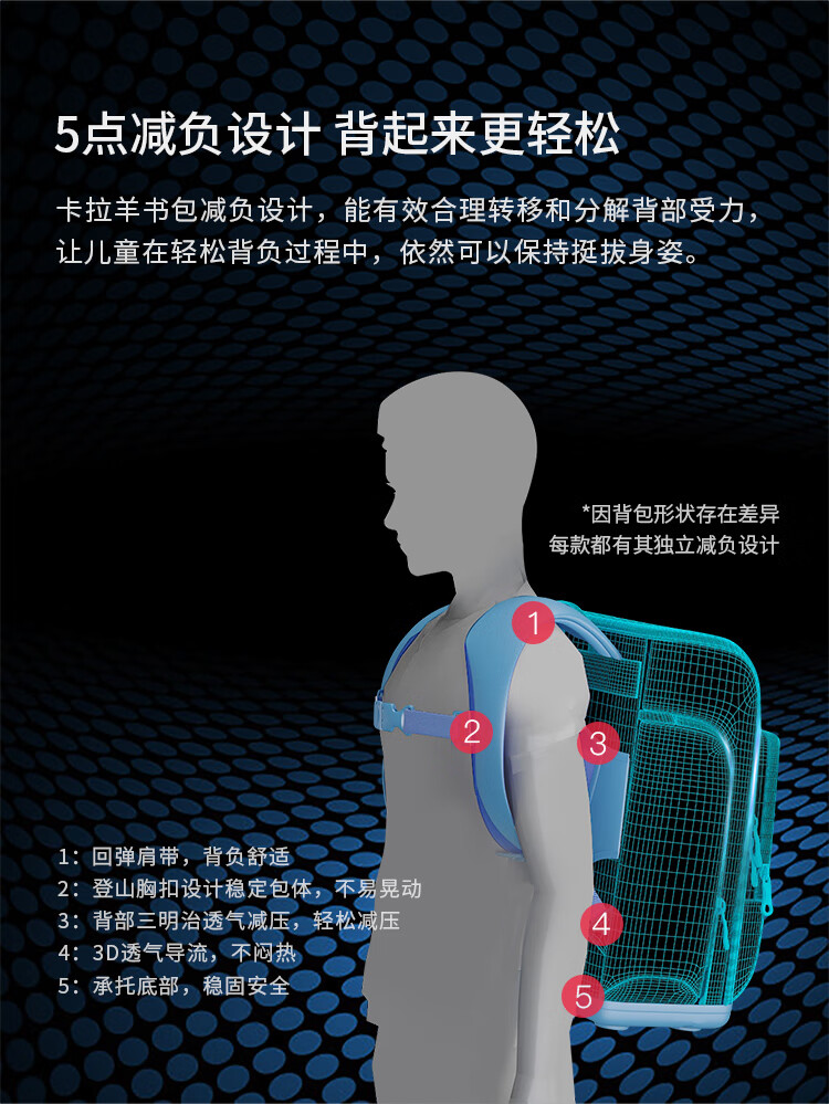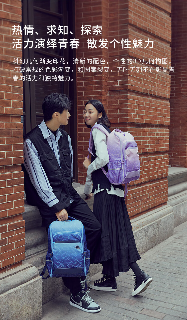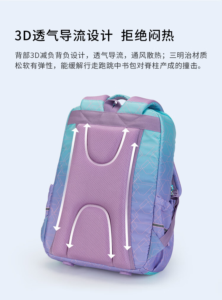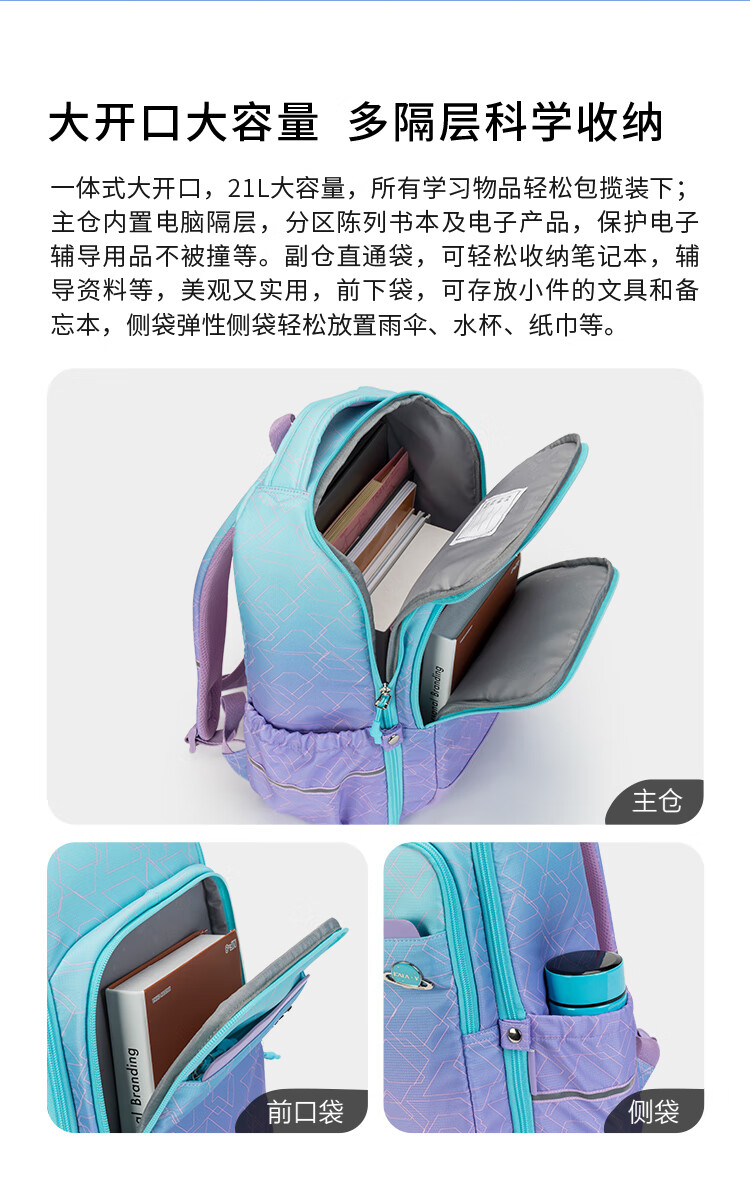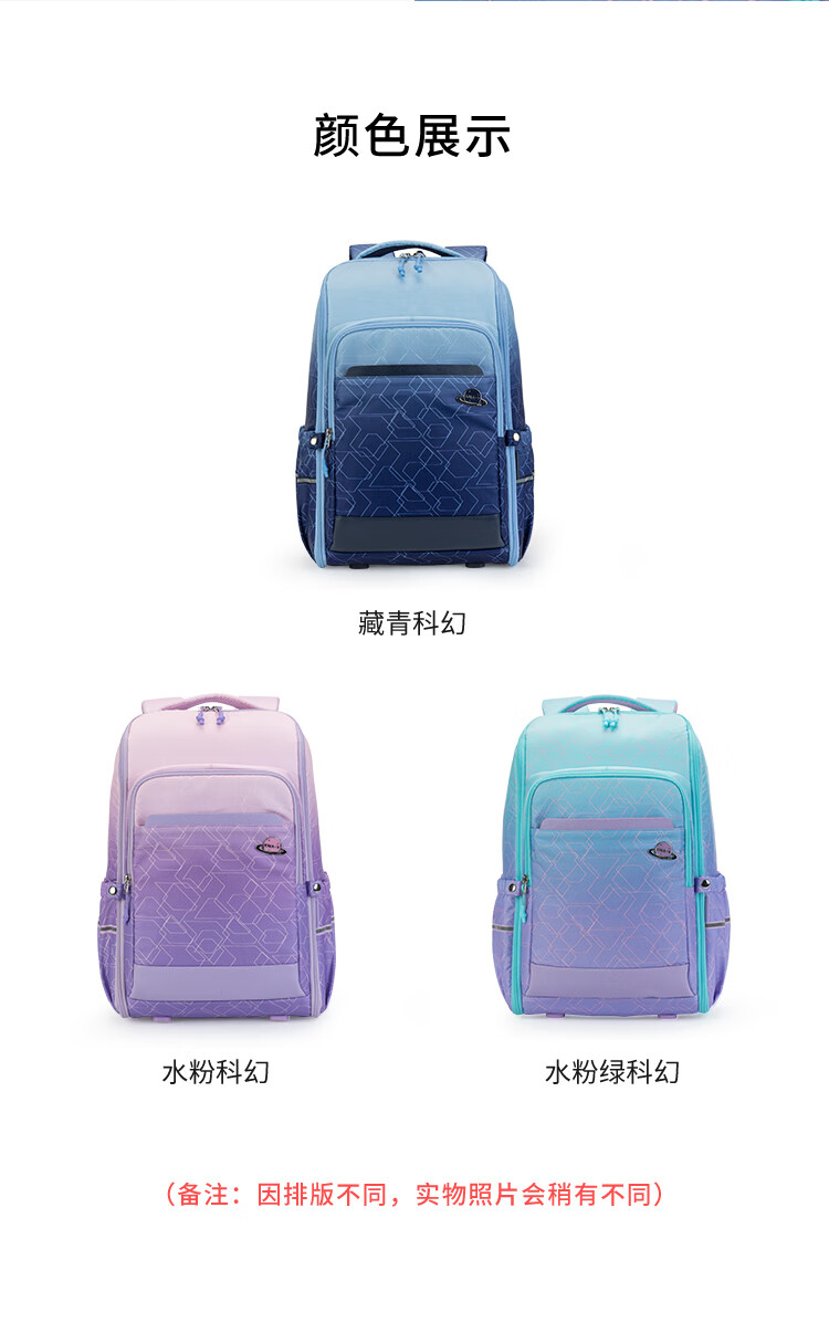 卡拉羊21L初高中生双肩包一体式可打开大容量书包防水抑菌书包CX5098 水粉科幻
