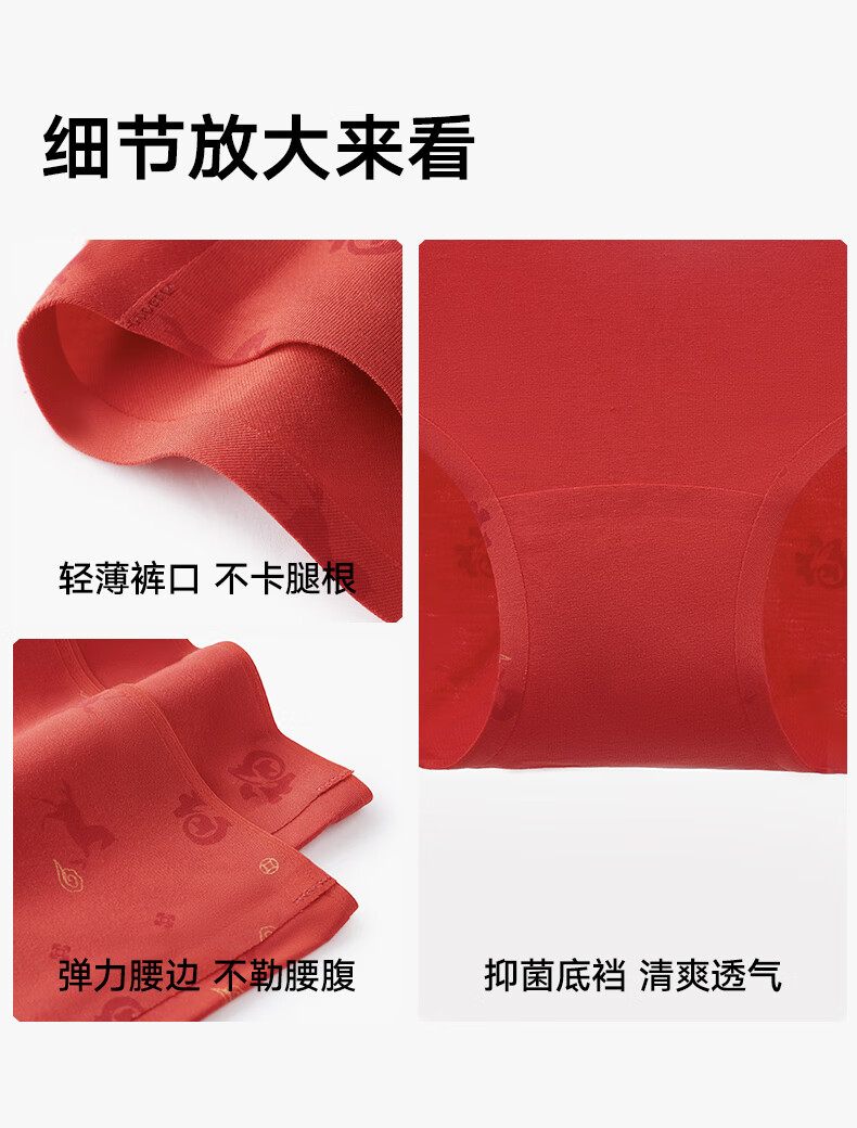 松山棉店女士高腰内裤7A抑菌透气不闷本命年大红莫代尔内裤喜庆结婚礼物