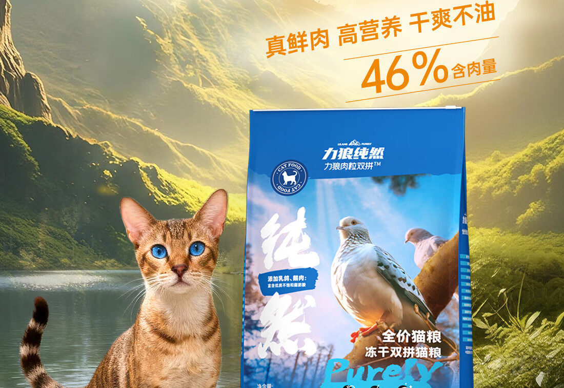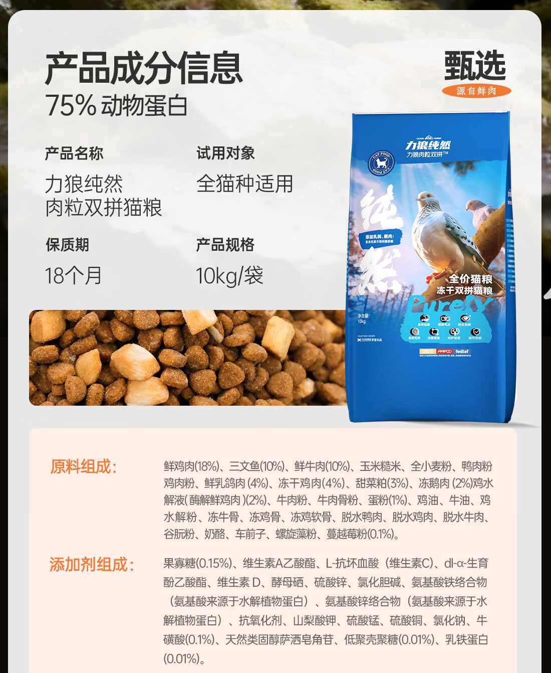 力狼(LILANG)猫粮 纯然幼猫成猫通用型鸡肉冻干双拼全价猫粮10kg(添加乳鸽)