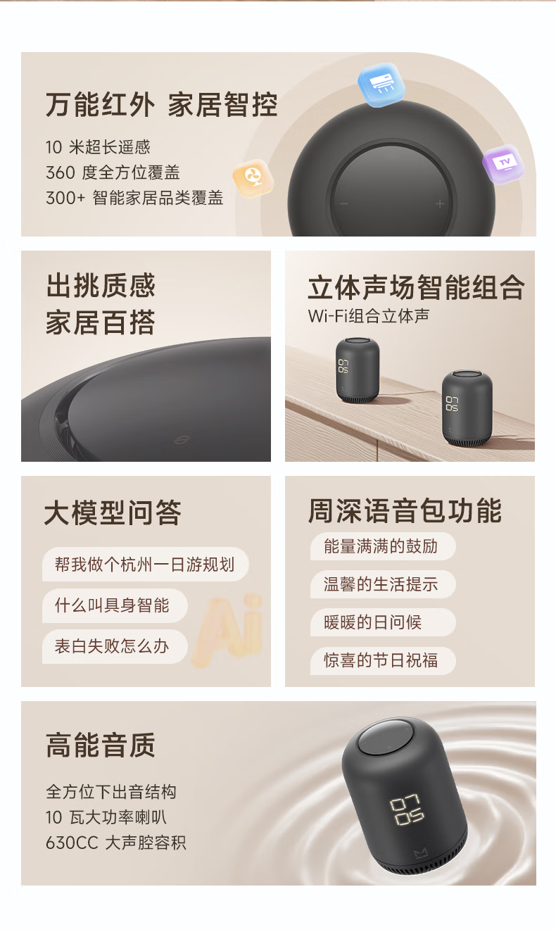 哇哦【国家补贴】天猫精灵AI大模型智能音箱Q糖 万能红外版家电遥控器高能音质蓝牙音响低音炮智能家居