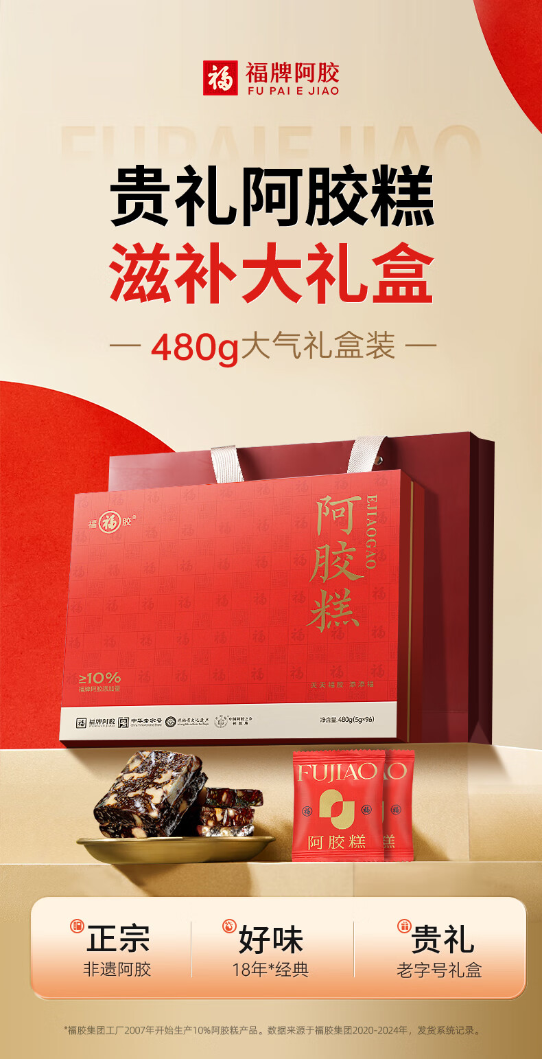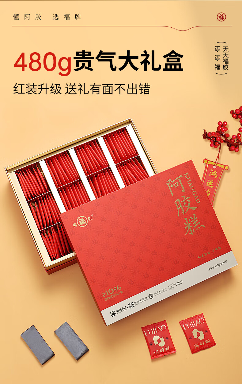福牌阿胶即食阿胶糕480g(阿胶添加25%)礼盒装送长辈送朋友送父母礼物 480g【阿胶添加25%】