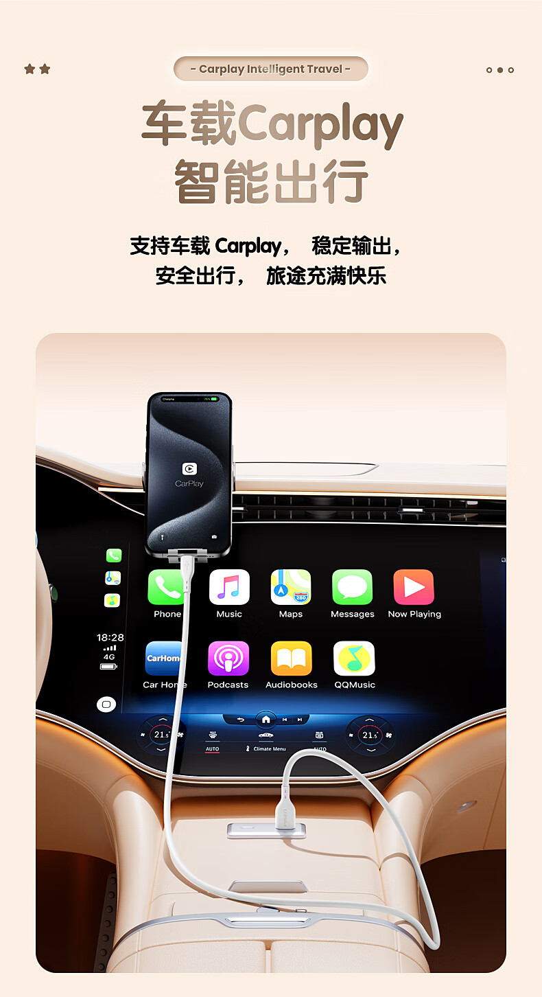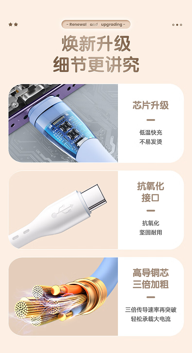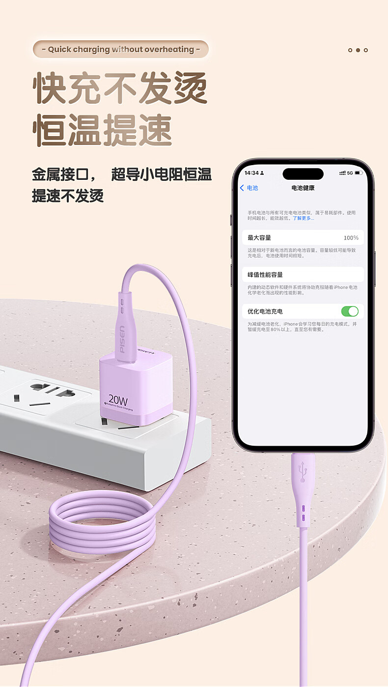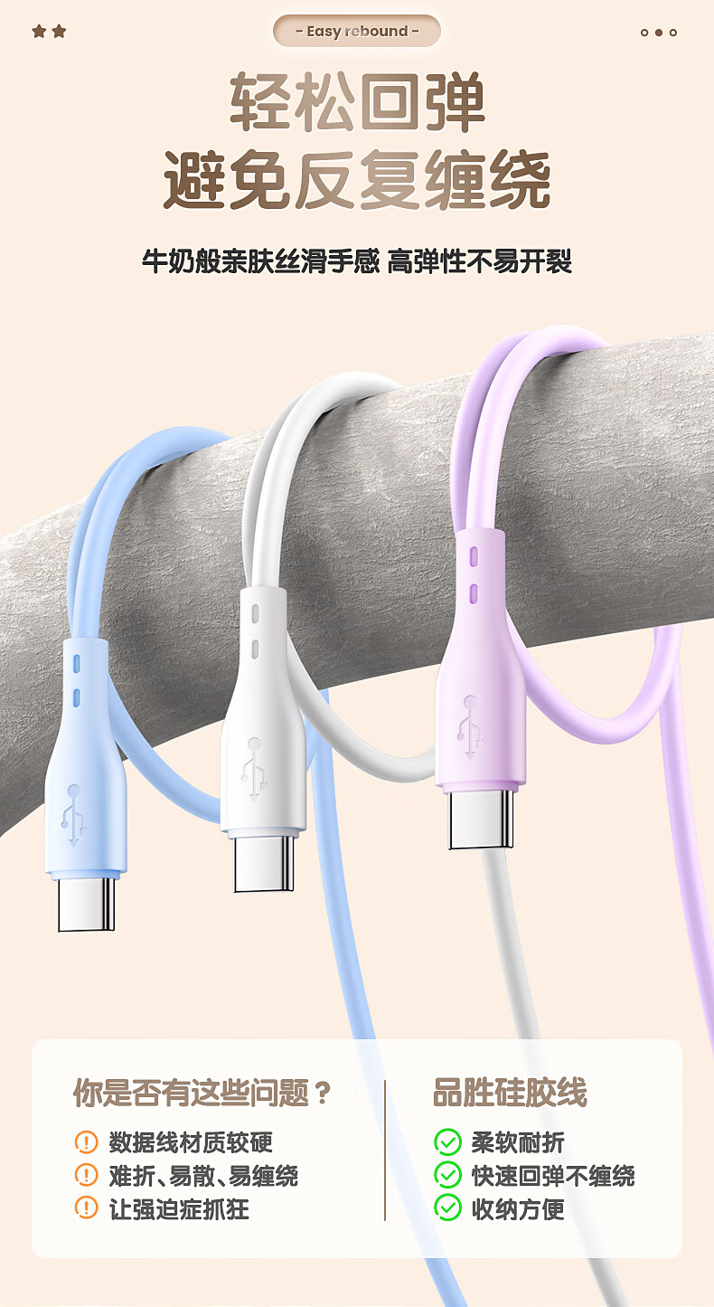 品胜苹果17充电线Type-C数据线3A快充硅胶USB-C车载Carplay适用iPhone16/15华为小米安卓手机AirPods4